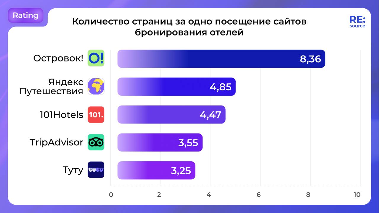 На сайте Островка посетители залипают чаще, чем на сайтах его конкурентов из сферы бронирования отелей