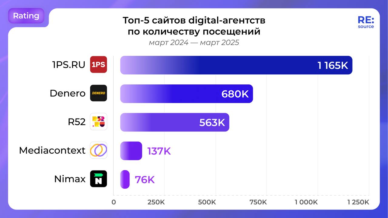 Среди топовых digital-агентств России больше всего посещений у сайта 1PS.RU