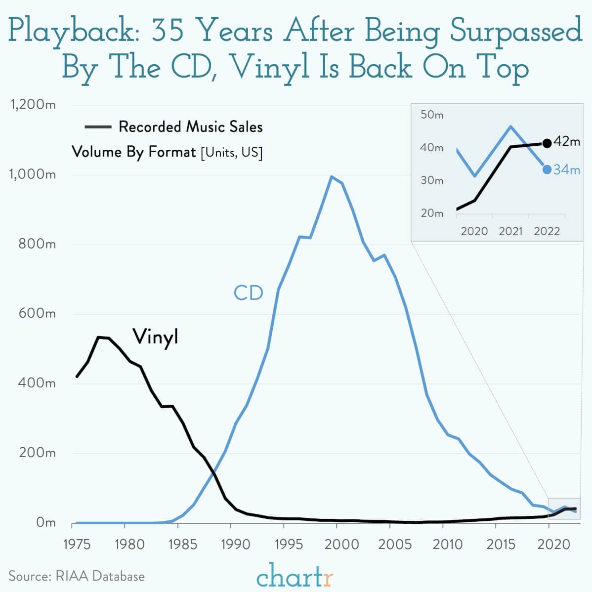 Почему виниловые пластинки в 2023 году обогнали CD по продажам?