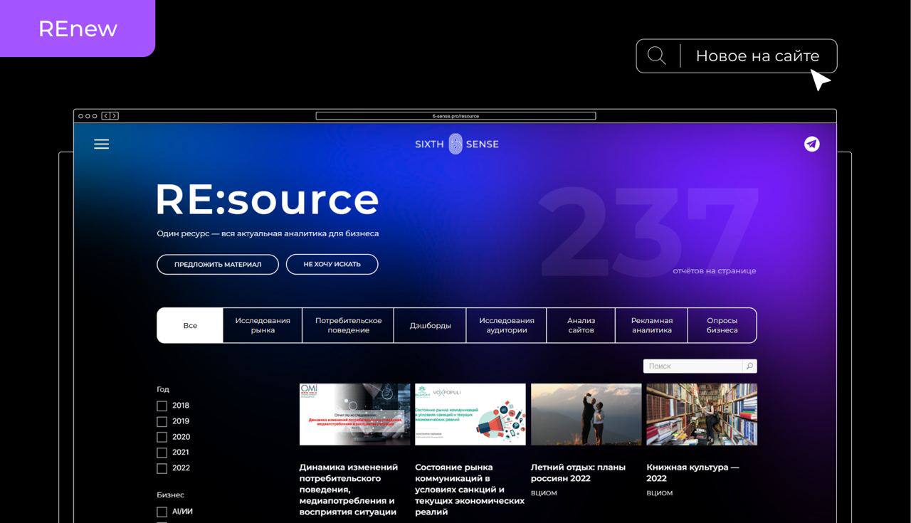 - RE:source6134 подписчика903 постаВся аналитика для бизнеса в одном месте. https://6-sense.pro/resource Маркетинговые исследования. Кейсы. Опросы. С вопросами по рекламе, идеям и инсайтам — @Vladimir_motin