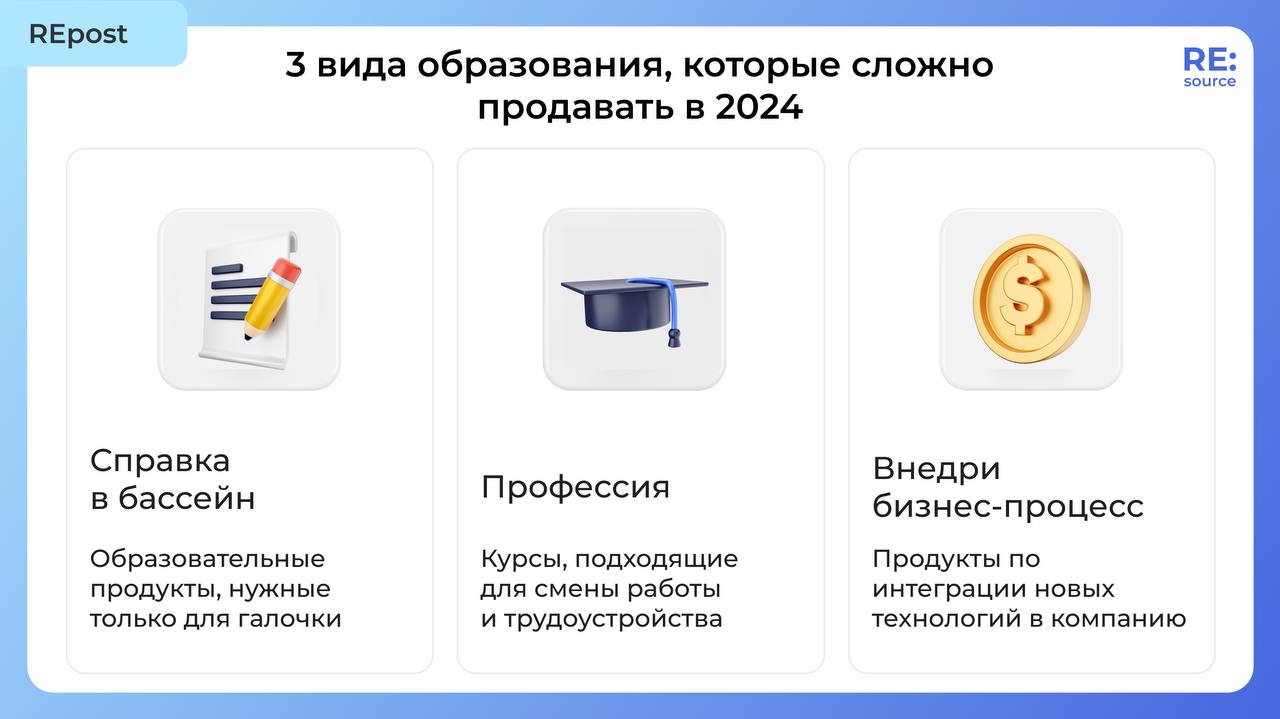 По результатам исследований программ в НИУ ВШЭ и Московском Политехе маркетолог Вадим Славгородский и коллеги выделили всего 7 сценариев образовательных программ, из которых 3 вида он строго не рекомендует к продаже. Где про это прочитать?