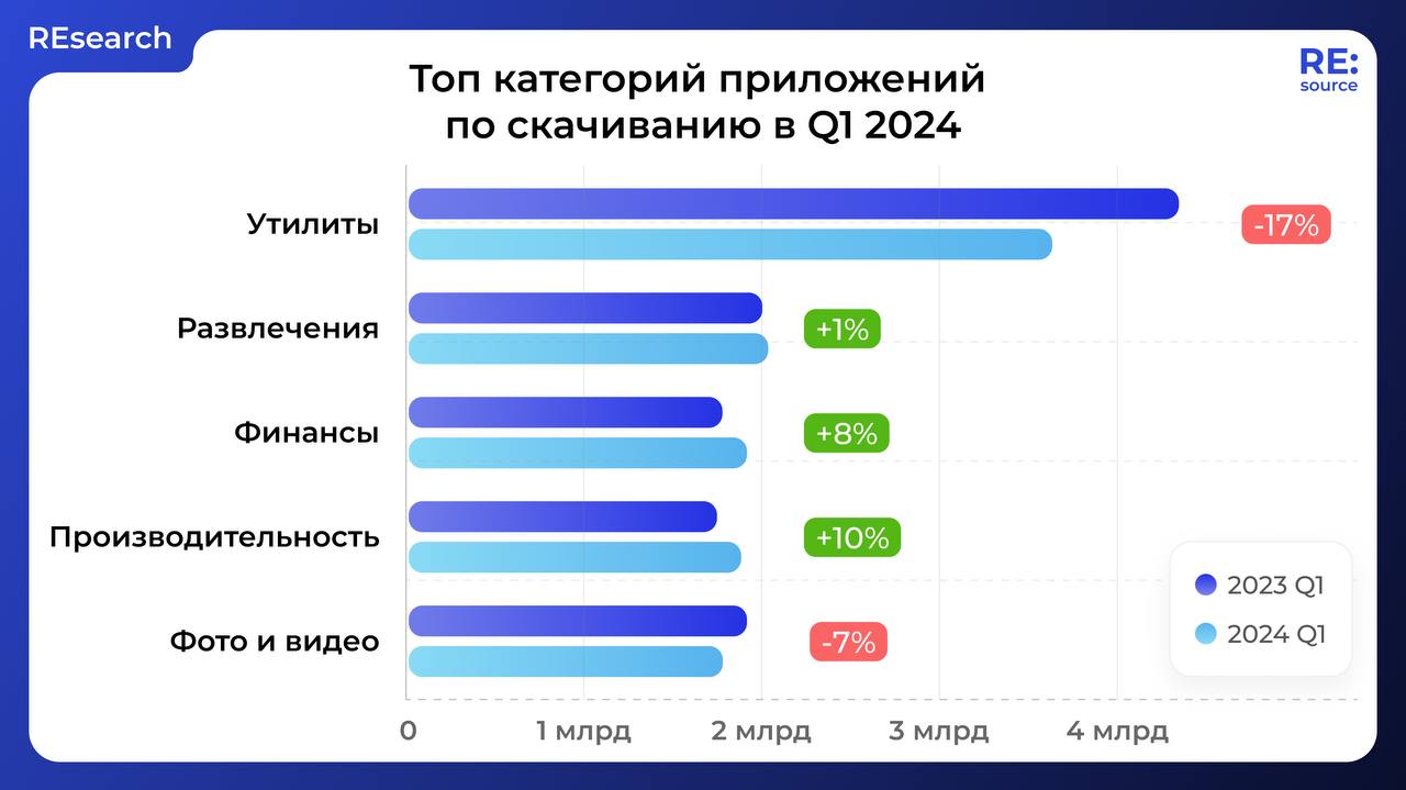 Опубликовано28 авг. 2024 г.#app+1Утилиты в 2024: скачивания упали на 17%Утилиты скачивают меньше в 2024 году: причины падения и сравнение с другими категориями