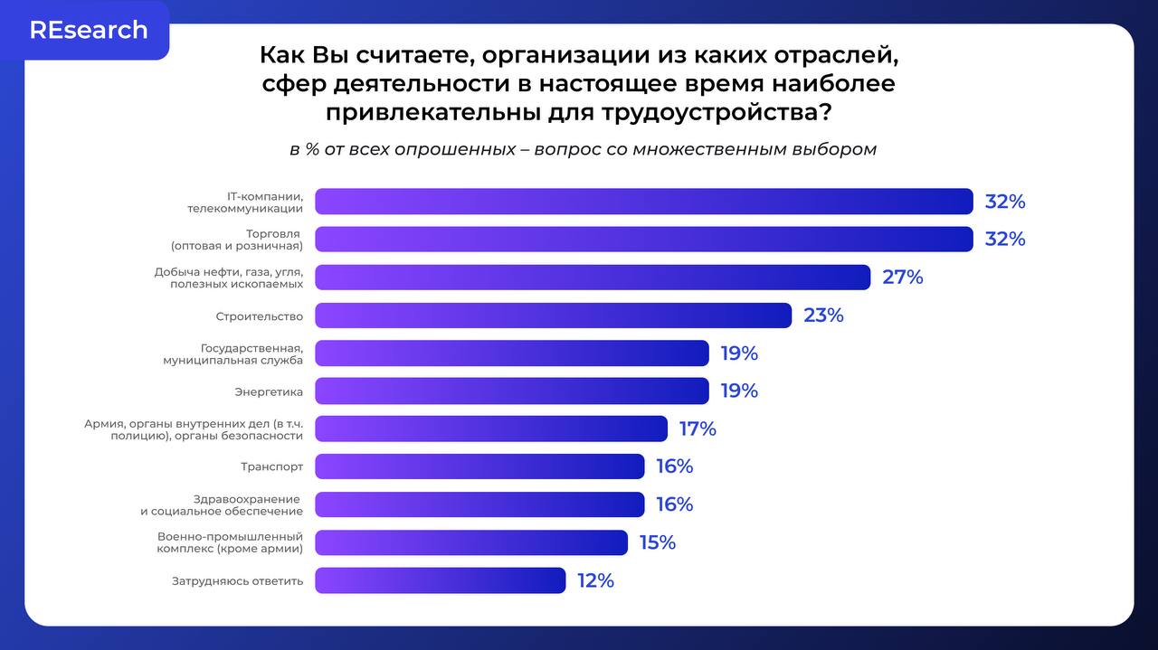 Опубликовано27 июн. 2023 г.#HR+1Уйти в IT хочет почти половина работающих россиянКто хочет уйти в IT? 32% россиян считают IT привлекательным и стабильным